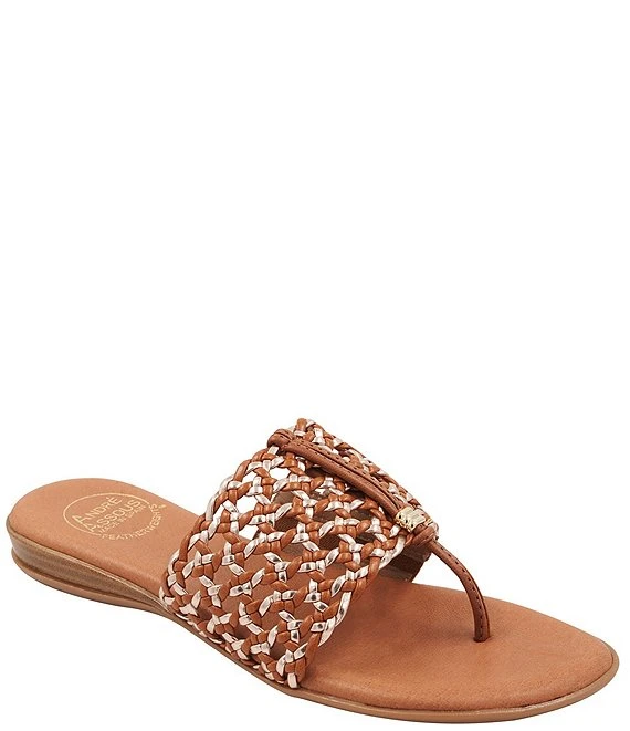 From Andre Assous, the Nice Woven Metallic Demi Wedge Sandals feature: