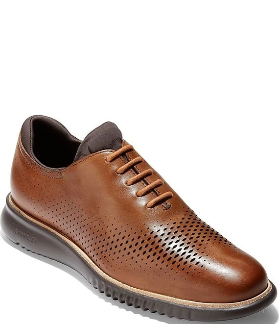 - Laser cut wingtip upper pattern in textured, smooth leather