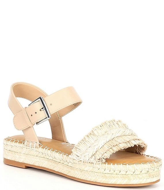 - Raffia front strap detailing and synthetic ankle strap