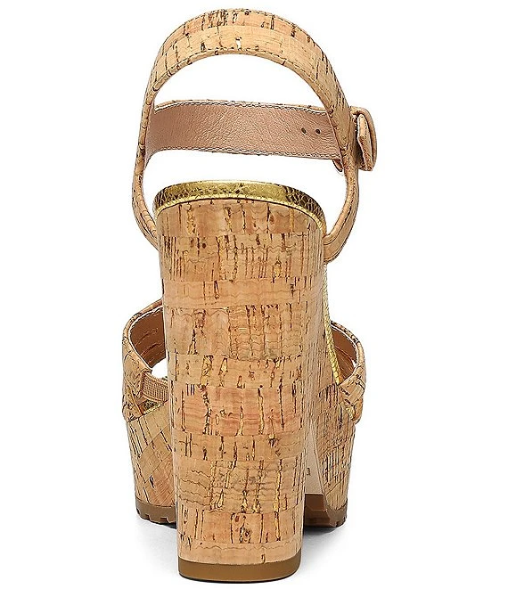 From Donald Pliner, the Galatea Crystal Ornament Cork Platform Sandals feature: