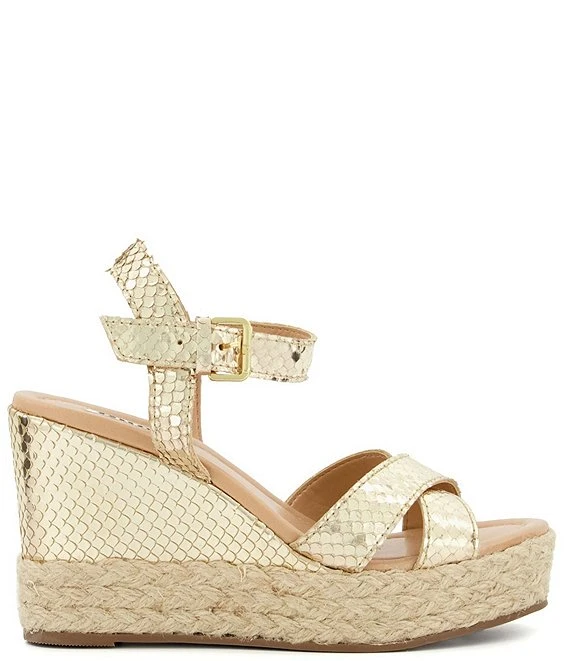 From Dune London, the Kind Snake Embossed Leather Platform Espadrille Wedge Sandals feature: