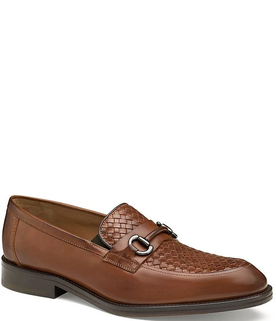 From Johnston & Murphy, the Men’s Meade Woven Leather Bit Loafers feature: