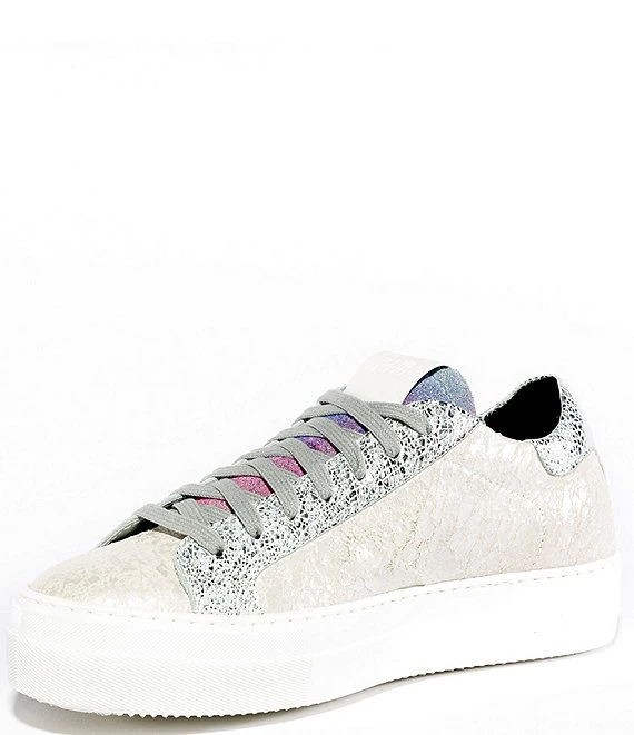 From P448, the Thea Plot Distressed Metallic Leather Platform Sneakers feature:Â