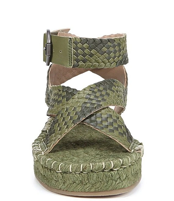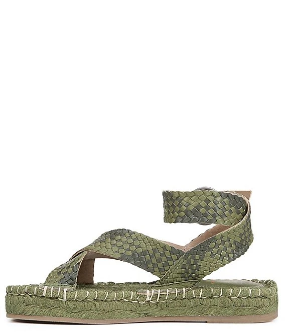 - Adjustable buckled ankle strap closure