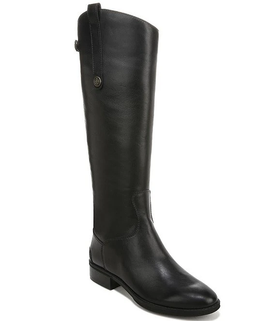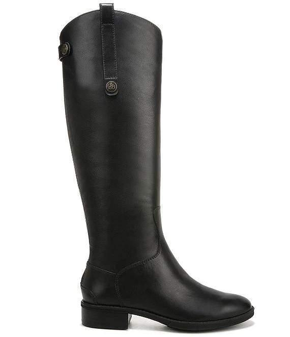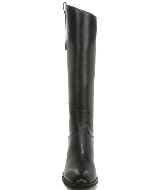 From Sam Edelman, the Penny Back Zip Wide Calf Block Heel Riding Boots feature: