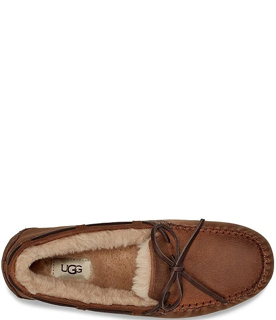 From UGG®, the Men’s Olsen Leather Slippers feature: